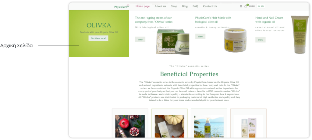Η PhysisCare ιδρύθηκε με όραμα την παραγωγή και πώληση φυσικών προϊόντων κοσμετολογίας. Δίνοντας ιδιαίτερη σημασία στην ποιότητα των προϊόντων της και την χρήση φυσικών συστατικών, κέρδισε την εκτίμηση των καταναλωτών και κατάφερε να γίνει ανταγωνιστική και στην αγορά του εξωτερικού.Στο πλαίσιο διεύρυνσης και προώθησης της εταιρίας, μας ανατέθηκε η φιλοξενία και ο σχεδιασμός του eshop με τρόπο ώστε να αναδεικνύονται τα φυσικά στοιχεία των προϊόντων.